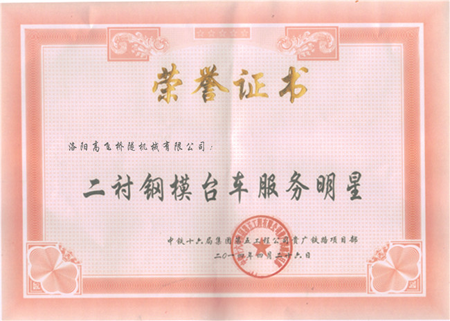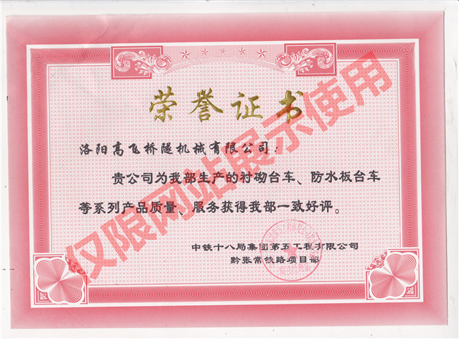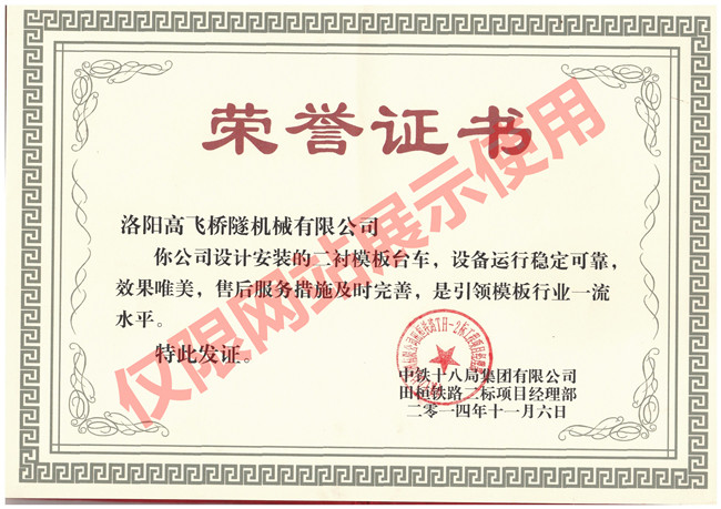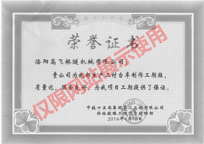 田恒鐵路項(xiàng)目榮譽(yù)證書(shū)