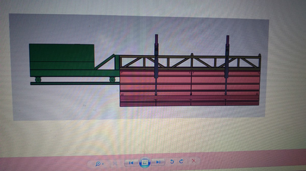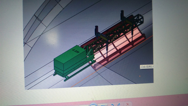 結(jié)構(gòu)∶液壓驅(qū)動(dòng)自行式移動(dòng)棧橋,主要由前橋、主橋、后橋、前段支架、后段支架、行走驅(qū)動(dòng)裝置、行走支架七個(gè)部分組成。